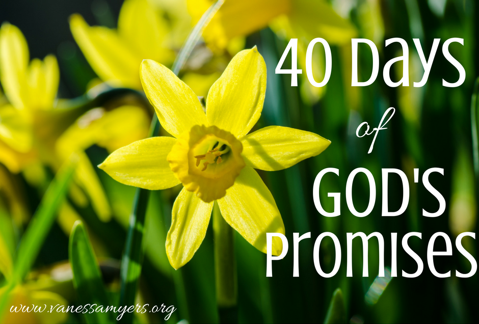 For each of the forty days of Lent I will write on one of God’s promises. If you subscribe via email to my blog, you will be getting more emails than you are used to from me! I hope that you will read each day of God’s promises to you. I pray these promises will encourage you and remind you of how magnificent and powerful our God is.
